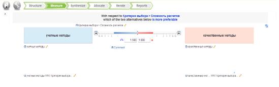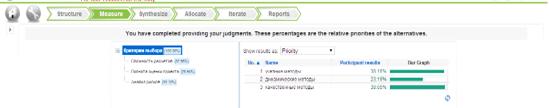 Тот же самый результат можно получить воспользовавшись представленной автоматизированной информационной системой, основанной на методе Саати. В качестве примера была выбрана «Expert choice», триальная версия которой расположенная по адресу: <#"880539.files/image044.jpg">