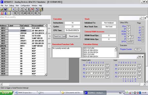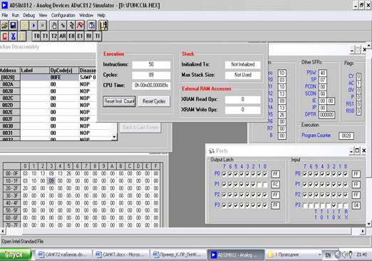 а) максимального времени реализации одного цикла управления (от пуска системы до окончания однократной реализации заданного алгоритма ) Время реализации определяется симулятором микроконтроллера автоматически при выполнении программы.