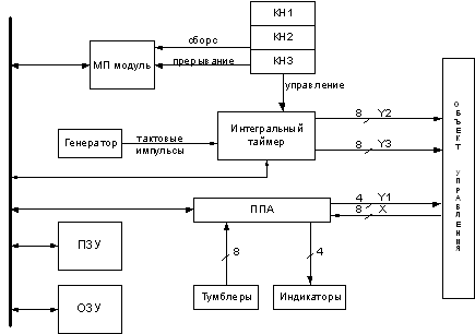 Подключение ПТ к системной магистрали аналогично подключению ППА. Тактирование счетчиков ПТ может осуществляться от имеющегося в МПМ генератора. Временные интервалы большой длительности могут быть обработаны путем последовательного соединения двух счетчиков ПТ.