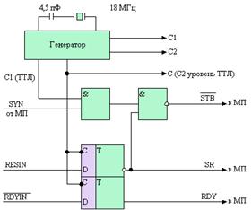схемы, обеспечивающие синхронизацию выдачи в микропроцессор сигналов сброса и