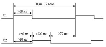 микропроцессора С1 и С2 с уровнем 12 В, сигнал С с уровнем ТТЛ, а также сигнал