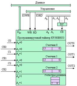 базе БИС программируемого таймера (ПТ) КР580ВИ53. Интерфейс кристалла ПТ и