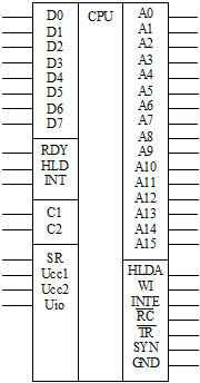 Микропроцессор КР580ВМ80А - функционально законченный однокристальный параллельный 8-разрядный микропроцессор с фиксированной системой команд, применяется в качестве центрального процессора в устройствах обработки данных и управления. Имеет 16-разряздый канал адреса, обеспечивающий адресацию памяти объёмом до 64кбайт, адресацию 256 устройств ввода-вывода, а также 8-разрядный канал данных.