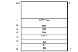 Диапазон УВВ - адреса 0-3 используются для адресации устройств ПИТ, 4-7 для адресации трех портов ППА - PA, PB,PC и регистра слова управления ППА