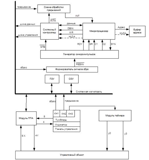 В процессе выполнения курсового проекта, была спроектирована схема микропроцессорной системы управления некоторым объектом. В пояснительной записке представлен подробный синтез структурной и принципиальной схемы.