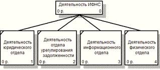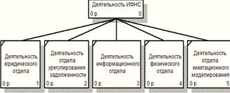 Диаграмма «Деятельность ИФНС» - первый уровень дерева узлов, остальные диаграммы («Деятельность юридического отдела», «Деятельность отдела урегулирования задолженности», «Деятельность информационного отдела» и «Деятельность юридического отдела») - второй уровень дерева узлов.