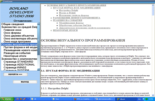 Рисунок 7. Главная форма электронного учебника.