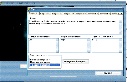 Тест (рисунок 12). В верхней части окна расположен вопрос, а в нижней варианты