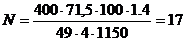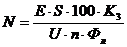 где Е - требуемая освещенность горизонтальной поверхности, люкс;- площадь помещения; Кз - коэффициент запаса (1,3-1,7); U- коэффициент использования осветительной установки; Фл - световой поток одной лампы, люмен; n - число ламп в одном светильнике.