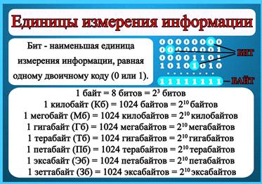 для создания плаката на тему «Единицы измерения информации», которую проходят в