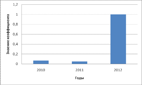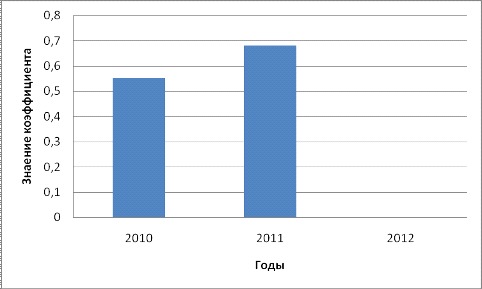 наблюдается ухудшение финансовой устойчивости предприятия. Коэффициент концентрации собственного капитала ниже нормативного значения, что говорит о зависимости предприятия от внешних кредиторов. Об этом же свидетельствует коэффициент концентрации заемных средств, который выше рекомендуемого уровня. У предприятия практически отсутствует возможность гибко реагировать на изменение рыночных условий. Но также существуют и положительная динамика в деятельности организации. Это касается значения коэффициента долгосрочного привлечения заемных средств, к 2012 году снизился, что свидетельствует об уменьшении зависимости предприятия от внешних инвесторов. Также повысился коэффициент финансовой независимости, что говорит о снижении доли заемных средств, так как за последний год предприятие рассчиталось с долгосрочными обязательствами.