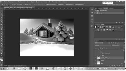изображение зимнего деревенского домика, оно у нас будет фоном.