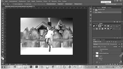 готовую вырезанную картинку козочки и размещаем ее на месте где вырезали