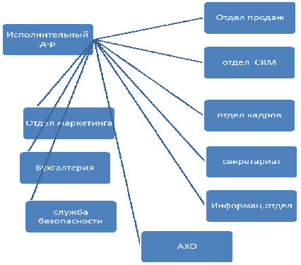 стоит исполнительный директор, в подчинении которого находятся следующие