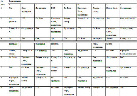 под культурой к общей площади севооборота, на год введения. Можно заметить, что