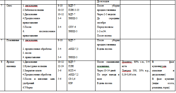 2.Зяблевая вспашка 3.Дискование 4.Предпосевная обработка 5.Посев 6. после