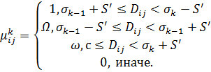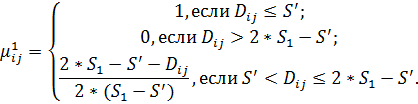 производится оценка коэффициентов вхождения j-го района в k-ю зону охвата i-го