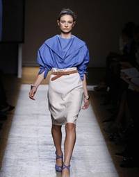 Отличной заменой красного становится палитра желтых и синих оттенков. Например, у Giorgio Armani Valentino Versace Ralph Lauren. Еще один ключевой тренд следующего лета - телесные оттенки большинство показов открывалось моделями в кремовых цветах с богатыми драпировками и вырезами в противоположность ярким кричащим краскам этого лета