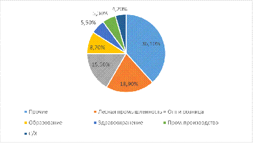 Из структуры собственной доходной базы, видно, что наибольшую часть доходов Шекснинского муниципального района составляют прочие доходы, которые включают в себя культуру, энергетику, финансовые структуры, управление, правоохранительные и судебные органы. Второе место занимает лесная промышленность, они привнесли в бюджет доходы в размере 18,9 %, так же большую часть занимают оптовая и розничная торговля (15,5%) и образование (8,7%).