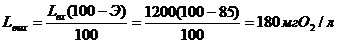 аэротенке 1-ой ступени Э=85%. Следовательно, концентрация БПК на выходе,