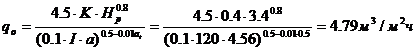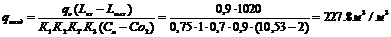qo=0.9 мг/л - удельный расход кислорода воздуха в мг на 1 мг снятой БПКполн, принимаемый при очистке до БПКполн свыше 20 мг/л; К1=0,75 - коэффициент, учитывающий тип аэратора и принимаемый для среднепузырчатой и низконапорной аэрации; К2=1 - коэффициент, принимаемый по СНиП 20403-85 в зависимости от глубины погружения аэратора на глубину ha=1,1м; К3=0,7 - коэффициент качества воды;