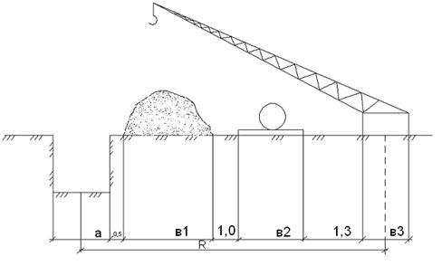 Определяем радиус действия крюка крана: