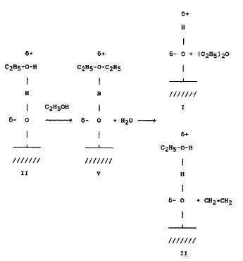 образованием хемосорбированного диэтилового эфира и воды (V). Молекула