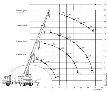 полученные характеристики, выбираем кран: КС 35714К-2 со стрелой 18 м.