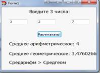 1.2.1 Программа «Сравнение среднего арифметического и среднего геометрического 3-х положительных чисел»