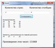 главной диагонали исходного массива, и их произведение. На рисунке 9