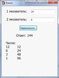 .1 Программа «Умножение двух натуральных чисел «русским методом» »