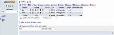 На рисунке 14 показан интерфейс приложения PhpMyAdmin :