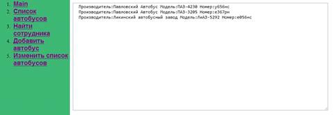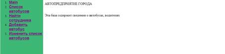 Для сайта необходимо создать разделы «Список автобусов», «Найти Сотрудника», «Добавить автобус», «Изменить список автобусов».