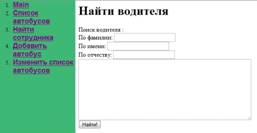 Написать HTML-страницу для работы с базой данных автобусов и водителей городского АТП. В ней должна существовать возможность выполнять следующие действия:
