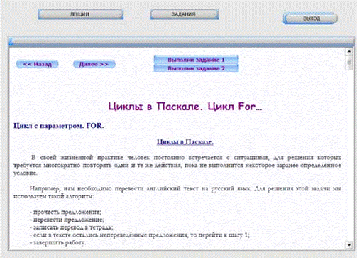 – Кнопки «Практика» и «Лекции» запускают окно имеющее соответственные меню (в соответствии с рисунком 3).