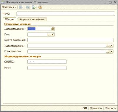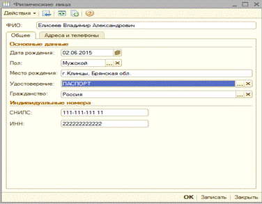Рисунок 16 - Заполнение справочника «Физические лица»