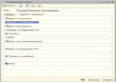 Рисунок 10 - Добавление адресов и телефонов физического лица