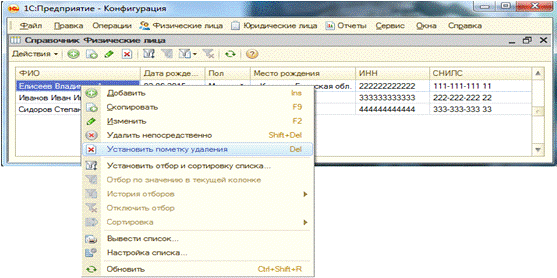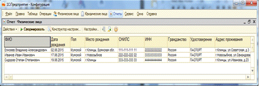 Первый отчёт в конфигурации - «Физические лица».