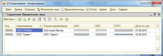 Рисунок 17 - Заполнение справочника «Юридические лица»