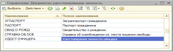 Рисунок 18 - Заполнение справочника «Документы удостоверяющие личность»