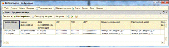 Второй отчёт в конфигурации - «Юридические лица».