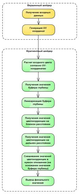 3.1.3 Реализация шейдера цветовой коррекции с использованием буфера глубины