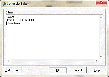 Для формирования отчета «Туры» первоначально создается SQL запрос на выборку данных из таблицы