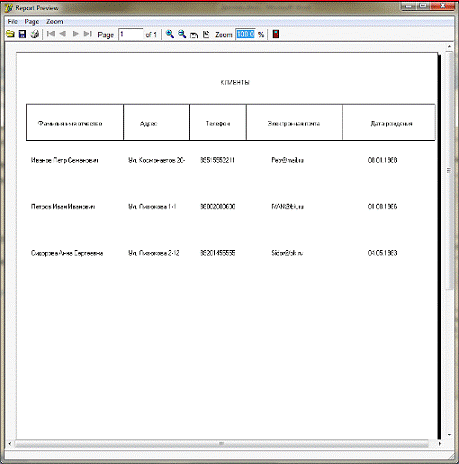 Внешний вид отчета «Клиенты» представлен на рисунке 4.10