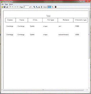 Внешний вид отчета «Туры» представлен на рисунке 4.12