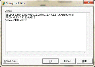 Для формирования отчета «Клиенты» первоначально создается SQL запрос на выборку данных из таблицы