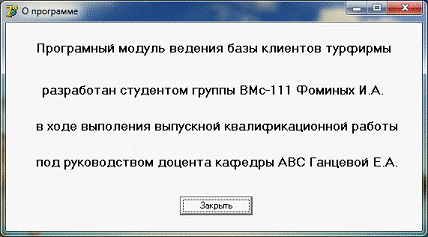 завершения работы с формой. Внешний вид формы представлен на рисунке 4.15.