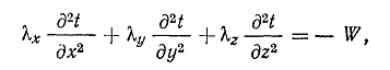 где W - объемная плотность источников тепла.