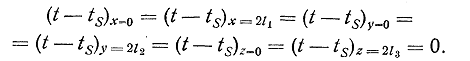 Так как на всех шести гранях параллелепипеда температура по условию задачи постоянна, то удобно в дальнейшем отсчитывать температуру от значения ts, т. е. рассматривать разность температур (t - ts). Тогда условия на гранях примут вид представленный в уравнение (3).