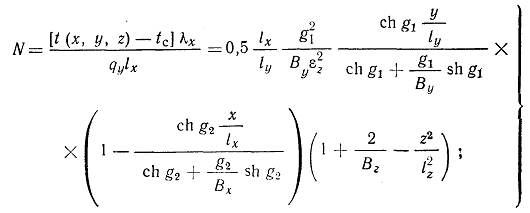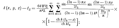 Формулы (10), (11) в отличие от (5), (6) позволяют найти температурное поле во всех точках параллелепипеда, в том числе и на его гранях, при любых значениях коэффициентов теплообмена.